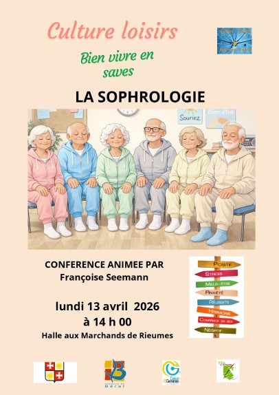Date de début3 avr. 2026Date de fin13 avr. 2026Masquer les dates de publicationtrueDescriptionL’association Culture – Loisirs – Bien Vivre en Savès organise le 13 avril 2026 à 14 h 00 à la Halle aux Marchands de Rieumes une conférence sur le thème « Les seniors et la sophrologie », animée par Françoise Seemann, sophrologue agréée par la Fédération Européenne de Sophrologie.