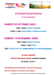 Mouv' Ton Corps vous propose de découvrir de nouvelles activités physiques grâce à ses ateliers découverte !