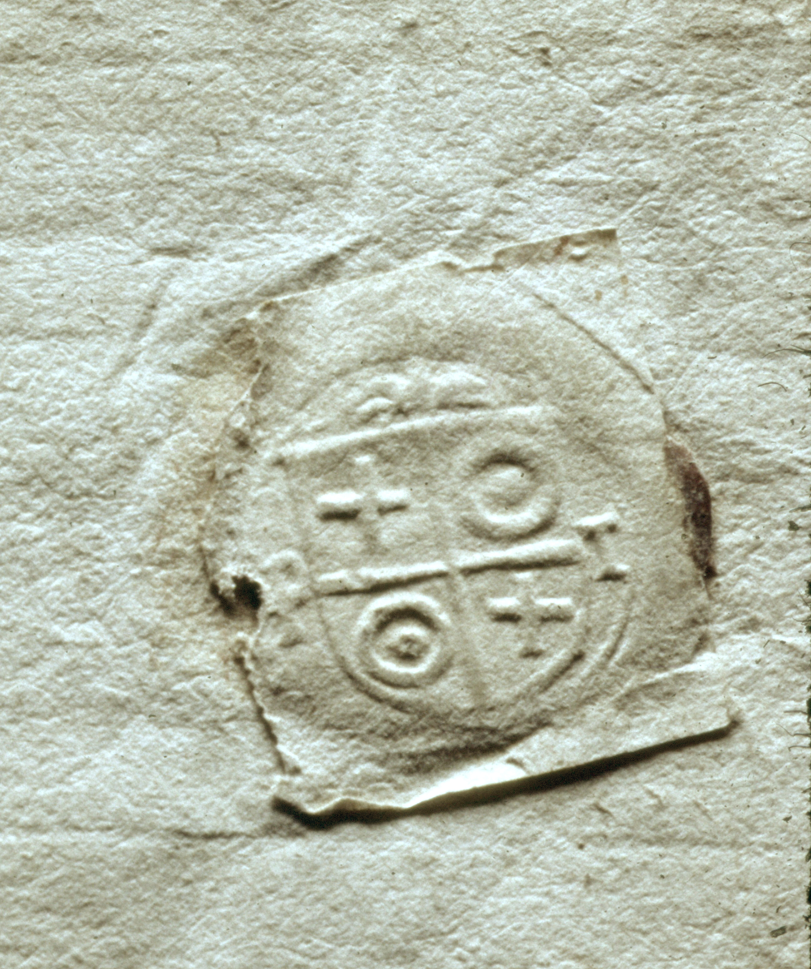 Ce blason est présent sur un manuscrit de 1568, texte juridique relatant un procès entre le Grand Prieur de Toulouse Pierre de Baulac Trébons et les consuls de Poucharramet.